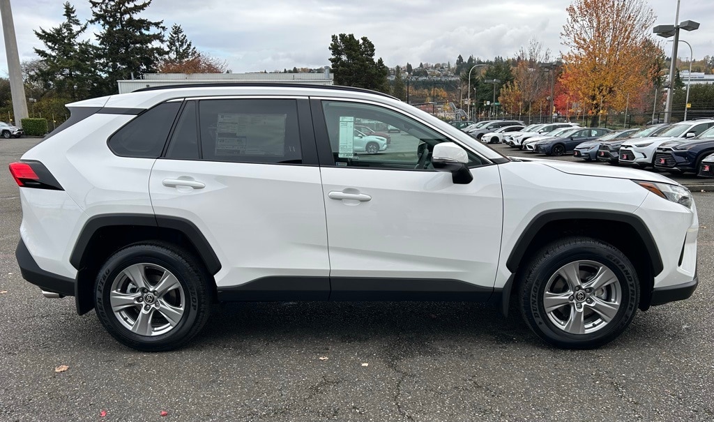 3 Spoke Leather Heated Steering Wheel, 4-Wheel Disc Brakes, 6 Speakers, ABS brakes, Air Conditioning, All Weather Floor Liners & Cargo Liner (TMS), Alloy wheels, AM/FM radio: SiriusXM, Auto High-beam Headlights, Automatic temperature control, Blackout Emblem Overlays (TMS), Brake assist, Bumpers: body-color, Convenience Package, Delay-off headlights, Driver door bin, Driver vanity mirror, Dual front impact airbags, Dual front side impact airbags, Electronic Stability Control, Emergency communication system: Safety Connect (10-year trial), Exterior Parking Camera Rear, Fabric Seat Trim, Four wheel independent suspension, Front anti-roll bar, Front Bucket Seats, Front Center Armrest, Front Door Smart Key System w/Push Button Start, Front dual zone A/C, Front reading lights, Front Seat Heating, Fully automatic headlights, Heated door mirrors, Illuminated entry, Knee airbag, Low tire pressure warning, Mudguards (TMS), Multimedia Screen Protector - Glass (TMS), Occupant sensing airbag, Outside temperature display, Overhead airbag, Overhead console, Panic alarm, Passenger door bin, Passenger vanity mirror, Power door mirrors, Power driver seat, Power steering, Power windows, Radio data system, Radio: AM/FM/XM Audio System, Rear anti-roll bar, Rear seat center armrest, Rear window defroster, Rear window wiper, Remote keyless entry, Speed control, Speed-sensing steering, Split folding rear seat, Spoiler, Steering wheel mounted audio controls, Tachometer, Telescoping steering wheel, Tilt & Slide Moon Roof, Tilt steering wheel, Traction control, Trip computer, Turn signal indicator mirrors, Variably intermittent wipers, Weather Package, Wheel Locks (TMS), Wheels: 17" 5-Spoke Silver Alloy.2025 Toyota RAV4 XLE Ice AWD 8-Speed Automatic 2.5L 4-Cylinder DOHC Dual VVT-i27/33 City/Highway MPG