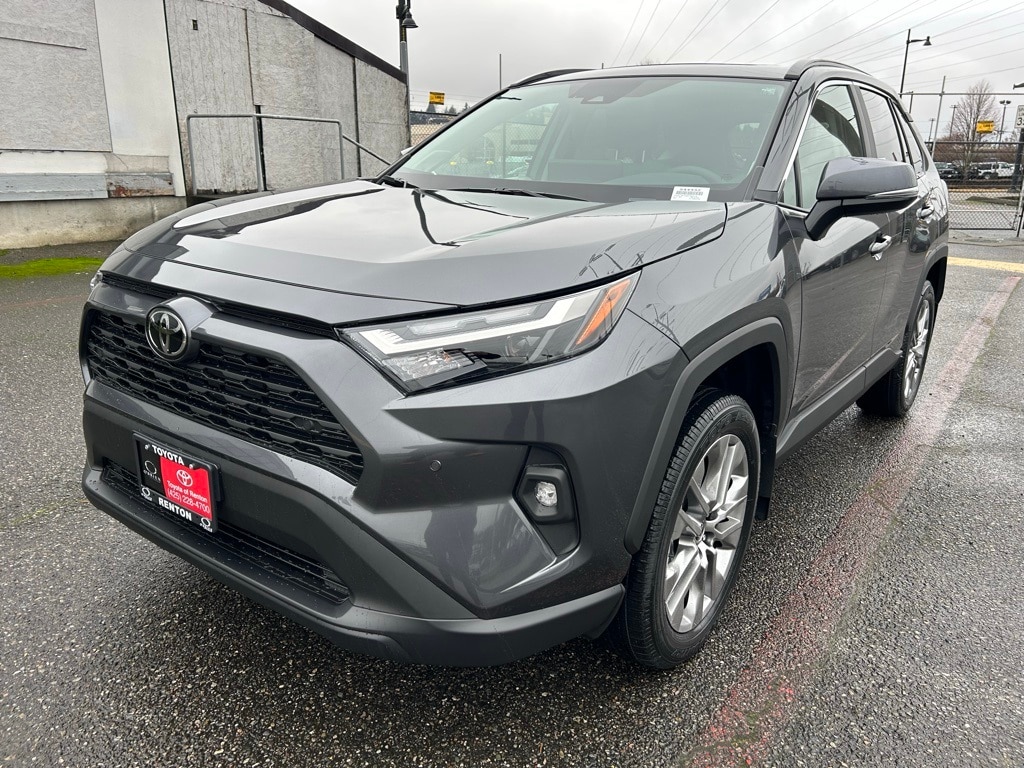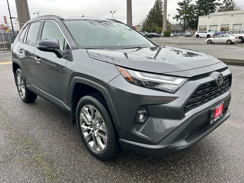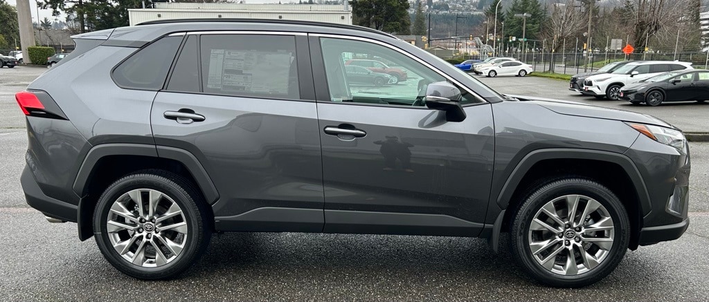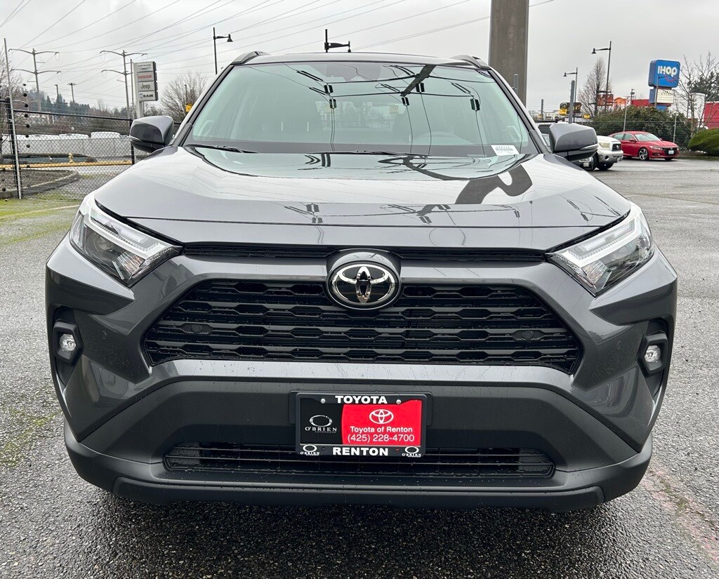 3 Spoke Leather Heated Steering Wheel, 3 Spoke Leather Steering Wheel, 4-Wheel Disc Brakes, 6 Speakers, ABS brakes, Advanced Technology Package, Air Conditioning, All Weather Floor Liners & Cargo Liner (TMS), Alloy wheels, AM/FM radio: SiriusXM, Anti-Theft System, Auto High-beam Headlights, Automatic temperature control, Blind Spot Monitor w/Lane Change Assist, Brake assist, Bumpers: body-color, Delay-off headlights, Driver door bin, Driver Seat w/2-Position Memory Function, Driver vanity mirror, Dual front impact airbags, Dual front side impact airbags, Electronic Inside Rear View Mirror, Electronic Stability Control, Emergency communication system: Safety Connect (10-year trial), Exterior Parking Camera Rear, Four wheel independent suspension, Front anti-roll bar, Front Bucket Seats, Front Center Armrest, Front dual zone A/C, Front reading lights, Front Seat Heating, Fully automatic headlights, Heated door mirrors, Illuminated entry, Intelligent Clearance Sonar, Knee airbag, Leather Shift Knob, Leather steering wheel, Low tire pressure warning, Mudguards (TMS), Occupant sensing airbag, Outside temperature display, Overhead airbag, Overhead console, Panic alarm, Parking Support Alert & Brake, Passenger door bin, Passenger vanity mirror, Power door mirrors, Power driver seat, Power Liftgate, Power moonroof, Power steering, Power windows, Radio data system, Radio: AM/FM/XM Audio System, Rear anti-roll bar, Rear seat center armrest, Rear window defroster, Rear window wiper, Remote keyless entry, SofTex Seat Trim, Speed control, Speed-sensing steering, Split folding rear seat, Spoiler, Steering wheel mounted audio controls, Tachometer, Telescoping steering wheel, Tilt steering wheel, Traction control, Trip computer, Turn signal indicator mirrors, Variably intermittent wipers, Weather Package, Wheel Locks (TMS), Wheels: 19" 5-Spoke Silver Alloy, Wireless Phone Charger, XLE Premium Package.2025 Toyota RAV4 XLE Premium Gray AWD 8-Speed Automatic 2.5L 4-Cylinder DOHC Dual VVT-i27/33 City/Highway MPG