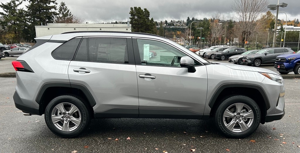 3 Spoke Leather Heated Steering Wheel, 4-Wheel Disc Brakes, 6 Speakers, ABS brakes, Air Conditioning, All Weather Floor Liners & Cargo Liner (TMS), Alloy wheels, AM/FM radio: SiriusXM, Auto High-beam Headlights, Automatic temperature control, Blackout Emblem Overlays (TMS), Brake assist, Bumpers: body-color, Convenience Package, Delay-off headlights, Driver door bin, Driver vanity mirror, Dual front impact airbags, Dual front side impact airbags, Electronic Stability Control, Emergency communication system: Safety Connect (10-year trial), Exterior Parking Camera Rear, Fabric Seat Trim, Four wheel independent suspension, Front anti-roll bar, Front Bucket Seats, Front Center Armrest, Front Door Smart Key System w/Push Button Start, Front dual zone A/C, Front reading lights, Front Seat Heating, Fully automatic headlights, Heated door mirrors, Illuminated entry, Knee airbag, Low tire pressure warning, Multimedia Screen Protector - Glass (TMS), Occupant sensing airbag, Outside temperature display, Overhead airbag, Overhead console, Panic alarm, Passenger door bin, Passenger vanity mirror, Power door mirrors, Power driver seat, Power steering, Power windows, Radio data system, Radio: AM/FM/XM Audio System, Rear anti-roll bar, Rear seat center armrest, Rear window defroster, Rear window wiper, Remote keyless entry, Speed control, Speed-sensing steering, Split folding rear seat, Spoiler, Steering wheel mounted audio controls, Tachometer, Telescoping steering wheel, Tilt & Slide Moon Roof, Tilt steering wheel, Traction control, Trip computer, Turn signal indicator mirrors, Variably intermittent wipers, Weather Package, Wheel Locks (TMS), Wheels: 17" 5-Spoke Silver Alloy.2025 Toyota RAV4 XLE Silver Sky Metallic AWD 8-Speed Automatic 2.5L 4-Cylinder DOHC Dual VVT-i27/33 City/Highway MPG