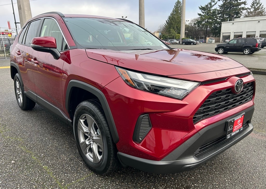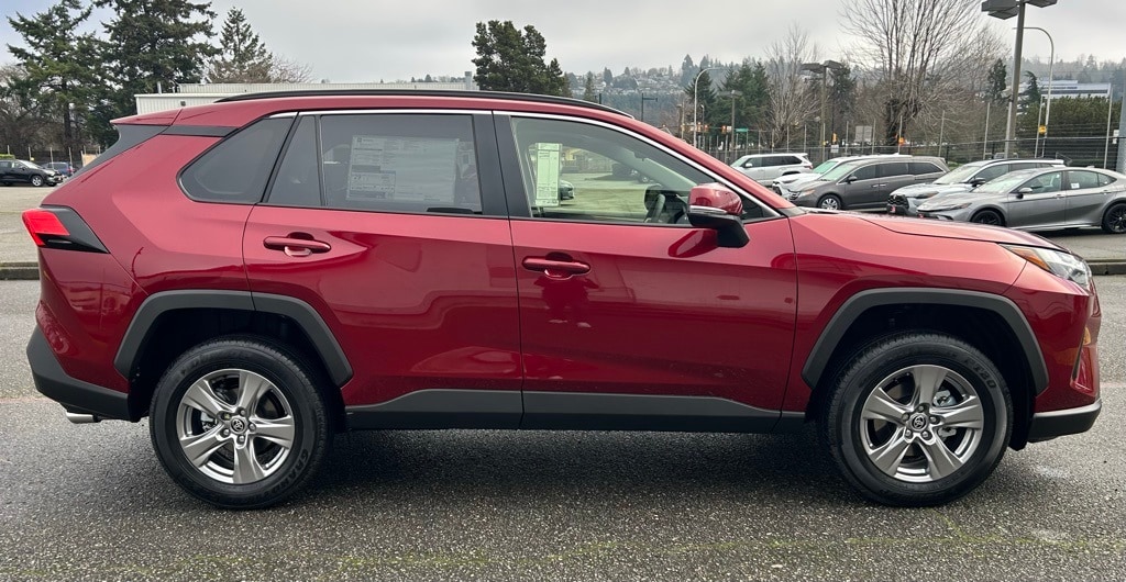 3 Spoke Leather Heated Steering Wheel, 4-Wheel Disc Brakes, 6 Speakers, ABS brakes, Air Conditioning, All Weather Floor Liners & Cargo Liner (TMS), Alloy wheels, AM/FM radio: SiriusXM, Auto High-beam Headlights, Automatic temperature control, Brake assist, Bumpers: body-color, Convenience Package, Delay-off headlights, Driver door bin, Driver vanity mirror, Dual front impact airbags, Dual front side impact airbags, Electronic Stability Control, Emergency communication system: Safety Connect (10-year trial), Exterior Parking Camera Rear, Fabric Seat Trim, Four wheel independent suspension, Front anti-roll bar, Front Bucket Seats, Front Center Armrest, Front Door Smart Key System w/Push Button Start, Front dual zone A/C, Front reading lights, Front Seat Heating, Fully automatic headlights, Heated door mirrors, Illuminated entry, Knee airbag, Low tire pressure warning, Mudguards (TMS), Multimedia Screen Protector - Glass (TMS), Occupant sensing airbag, Outside temperature display, Overhead airbag, Overhead console, Panic alarm, Passenger door bin, Passenger vanity mirror, Power door mirrors, Power driver seat, Power steering, Power windows, Radio data system, Radio: AM/FM/XM Audio System, Rear anti-roll bar, Rear seat center armrest, Rear window defroster, Rear window wiper, Remote keyless entry, Speed control, Speed-sensing steering, Split folding rear seat, Spoiler, Steering wheel mounted audio controls, Tachometer, Telescoping steering wheel, Tilt & Slide Moon Roof, Tilt steering wheel, Traction control, Trip computer, Turn signal indicator mirrors, Variably intermittent wipers, Weather Package, Wheel Locks (TMS), Wheels: 17" 5-Spoke Silver Alloy.2025 Toyota RAV4 XLE Ruby AWD 8-Speed Automatic 2.5L 4-Cylinder DOHC Dual VVT-iRecent Arrival! 27/33 City/Highway MPG