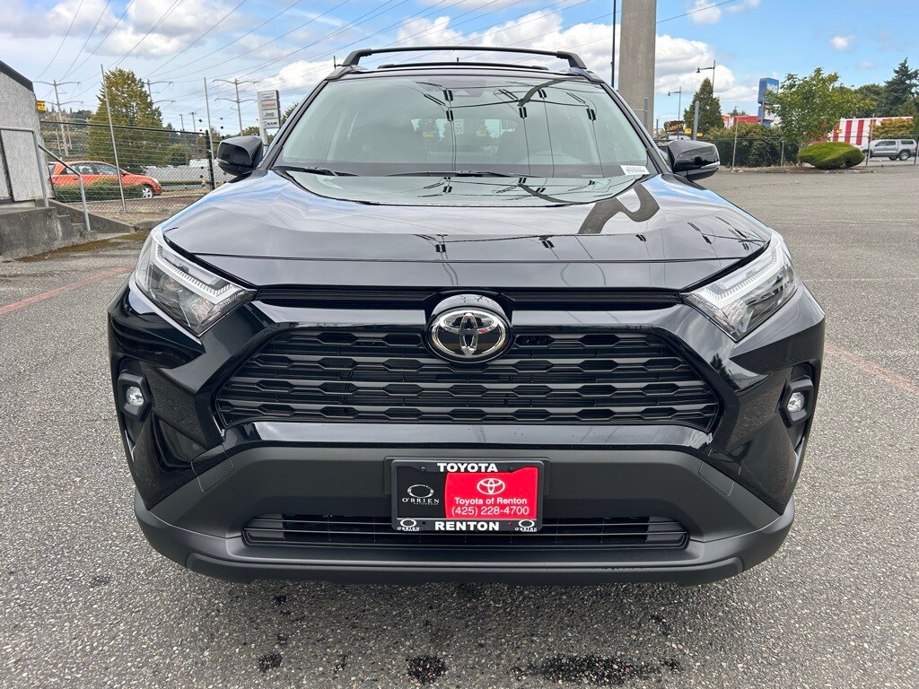 3 Spoke Leather Heated Steering Wheel, 3 Spoke Leather Steering Wheel, 4-Wheel Disc Brakes, 6 Speakers, ABS brakes, Air Conditioning, All Weather Floor Liners & Cargo Liner (TMS), Alloy wheels, AM/FM radio: SiriusXM, Auto High-beam Headlights, Automatic temperature control, Blackout Emblem Overlays (TMS), Brake assist, Bumpers: body-color, Delay-off headlights, Driver door bin, Driver Seat w/2-Position Memory Function, Driver vanity mirror, Dual front impact airbags, Dual front side impact airbags, Electronic Stability Control, Emergency communication system: Safety Connect (10-year trial), Exterior Parking Camera Rear, Four wheel independent suspension, Front anti-roll bar, Front Bucket Seats, Front Center Armrest, Front dual zone A/C, Front reading lights, Front Seat Heating, Fully automatic headlights, Heated door mirrors, Illuminated entry, Knee airbag, Leather Shift Knob, Leather steering wheel, Low tire pressure warning, Mudguards (TMS), Multimedia Screen Protector - Glass (TMS), Occupant sensing airbag, Outside temperature display, Overhead airbag, Overhead console, Panic alarm, Passenger door bin, Passenger vanity mirror, Power door mirrors, Power driver seat, Power Liftgate, Power moonroof, Power steering, Power windows, Radio data system, Radio: AM/FM/XM Audio System, Rear anti-roll bar, Rear seat center armrest, Rear window defroster, Rear window wiper, Remote keyless entry, Roof Rack Cross Bars (TMS), SofTex Seat Trim, Speed control, Speed-sensing steering, Split folding rear seat, Spoiler, Steering wheel mounted audio controls, Tachometer, Telescoping steering wheel, Tilt steering wheel, Traction control, Trip computer, Turn signal indicator mirrors, Variably intermittent wipers, Weather Package, Wheel Locks (TMS), Wheels: 19" 5-Spoke Silver Alloy, XLE Premium Package.2025 Toyota RAV4 XLE Premium Black AWD 8-Speed Automatic 2.5L 4-Cylinder DOHC Dual VVT-iRecent Arrival! 27/33 City/Highway MPG