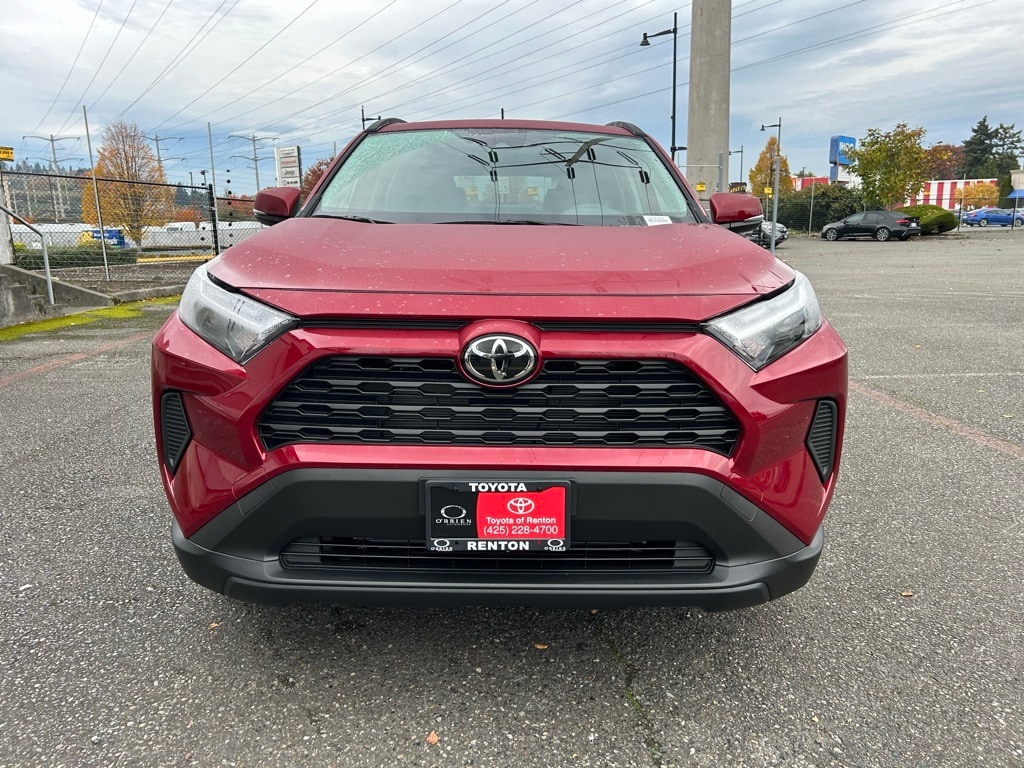 3 Spoke Leather Heated Steering Wheel, 4-Wheel Disc Brakes, 6 Speakers, ABS brakes, Air Conditioning, All Weather Floor Liners & Cargo Liner (TMS), Alloy wheels, AM/FM radio: SiriusXM, Auto High-beam Headlights, Automatic temperature control, Brake assist, Bumpers: body-color, Convenience Package, Delay-off headlights, Driver door bin, Driver vanity mirror, Dual front impact airbags, Dual front side impact airbags, Electronic Stability Control, Emergency communication system: Safety Connect (10-year trial), Exterior Parking Camera Rear, Fabric Seat Trim, Four wheel independent suspension, Frameless HomeLink Mirror (TMS), Front anti-roll bar, Front Bucket Seats, Front Center Armrest, Front Door Smart Key System w/Push Button Start, Front dual zone A/C, Front reading lights, Front Seat Heating, Fully automatic headlights, Heated door mirrors, Illuminated entry, Knee airbag, Low tire pressure warning, Mudguards (TMS), Occupant sensing airbag, Outside temperature display, Overhead airbag, Overhead console, Panic alarm, Passenger door bin, Passenger vanity mirror, Power door mirrors, Power driver seat, Power steering, Power windows, Radio data system, Radio: AM/FM/XM Audio System, Rear anti-roll bar, Rear seat center armrest, Rear window defroster, Rear window wiper, Remote keyless entry, Speed control, Speed-sensing steering, Split folding rear seat, Spoiler, Steering wheel mounted audio controls, Tachometer, Telescoping steering wheel, Tilt & Slide Moon Roof, Tilt steering wheel, Traction control, Trip computer, Turn signal indicator mirrors, Variably intermittent wipers, Weather Package, Wheel Locks (TMS), Wheels: 17" 5-Spoke Silver Alloy.2025 Toyota RAV4 XLE Ruby AWD 8-Speed Automatic 2.5L 4-Cylinder DOHC Dual VVT-iRecent Arrival! 27/33 City/Highway MPG