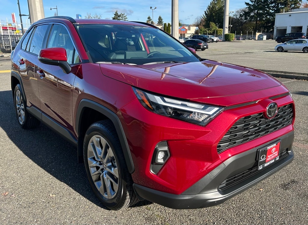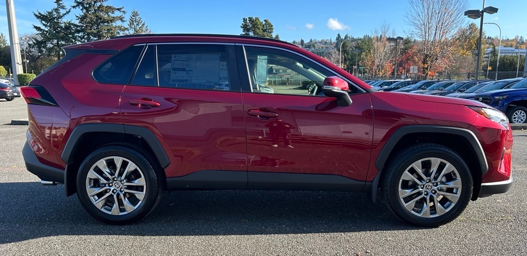 3 Spoke Leather Heated Steering Wheel, 3 Spoke Leather Steering Wheel, 4-Wheel Disc Brakes, 6 Speakers, ABS brakes, Air Conditioning, All Weather Floor Liners & Cargo Liner (TMS), Alloy wheels, AM/FM radio: SiriusXM, Anti-Theft System, Auto High-beam Headlights, Automatic temperature control, Brake assist, Bumpers: body-color, Delay-off headlights, Driver door bin, Driver Seat w/2-Position Memory Function, Driver vanity mirror, Dual front impact airbags, Dual front side impact airbags, Electronic Stability Control, Emergency communication system: Safety Connect (10-year trial), Exterior Parking Camera Rear, Four wheel independent suspension, Front anti-roll bar, Front Bucket Seats, Front Center Armrest, Front dual zone A/C, Front reading lights, Front Seat Heating, Fully automatic headlights, Heated door mirrors, Illuminated entry, Knee airbag, Leather Shift Knob, Leather steering wheel, Low tire pressure warning, Mudguards (TMS), Occupant sensing airbag, Outside temperature display, Overhead airbag, Overhead console, Panic alarm, Passenger door bin, Passenger vanity mirror, Power door mirrors, Power driver seat, Power Liftgate, Power moonroof, Power steering, Power windows, Radio data system, Radio: AM/FM/XM Audio System, Rear anti-roll bar, Rear seat center armrest, Rear window defroster, Rear window wiper, Remote keyless entry, SofTex Seat Trim, Speed control, Speed-sensing steering, Split folding rear seat, Spoiler, Steering wheel mounted audio controls, Tachometer, Telescoping steering wheel, Tilt steering wheel, Traction control, Trip computer, Turn signal indicator mirrors, Variably intermittent wipers, Weather Package, Wheel Locks (TMS), Wheels: 19" 5-Spoke Silver Alloy, XLE Premium Package.2025 Toyota RAV4 XLE Premium Ruby AWD 8-Speed Automatic 2.5L 4-Cylinder DOHC Dual VVT-iRecent Arrival! 27/33 City/Highway MPG