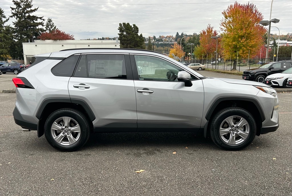 3 Spoke Leather Heated Steering Wheel, 4-Wheel Disc Brakes, 6 Speakers, ABS brakes, Air Conditioning, All Weather Floor Liners & Cargo Liner (TMS), Alloy wheels, AM/FM radio: SiriusXM, Auto High-beam Headlights, Automatic temperature control, Brake assist, Bumpers: body-color, Convenience Package, Delay-off headlights, Driver door bin, Driver vanity mirror, Dual front impact airbags, Dual front side impact airbags, Electronic Stability Control, Emergency communication system: Safety Connect (10-year trial), Exterior Parking Camera Rear, Fabric Seat Trim, Four wheel independent suspension, Front anti-roll bar, Front Bucket Seats, Front Center Armrest, Front Door Smart Key System w/Push Button Start, Front dual zone A/C, Front reading lights, Front Seat Heating, Fully automatic headlights, Heated door mirrors, Illuminated entry, Knee airbag, Low tire pressure warning, Mudguards (TMS), Occupant sensing airbag, Outside temperature display, Overhead airbag, Overhead console, Panic alarm, Passenger door bin, Passenger vanity mirror, Power door mirrors, Power driver seat, Power steering, Power windows, Radio data system, Radio: AM/FM/XM Audio System, Rear anti-roll bar, Rear seat center armrest, Rear window defroster, Rear window wiper, Remote keyless entry, Speed control, Speed-sensing steering, Split folding rear seat, Spoiler, Steering wheel mounted audio controls, Tachometer, Telescoping steering wheel, Tilt & Slide Moon Roof, Tilt steering wheel, Traction control, Trip computer, Turn signal indicator mirrors, Variably intermittent wipers, Weather Package, Wheel Locks (TMS), Wheels: 17" 5-Spoke Silver Alloy.2025 Toyota RAV4 XLE Silver Sky Metallic AWD 8-Speed Automatic 2.5L 4-Cylinder DOHC Dual VVT-i27/33 City/Highway MPG