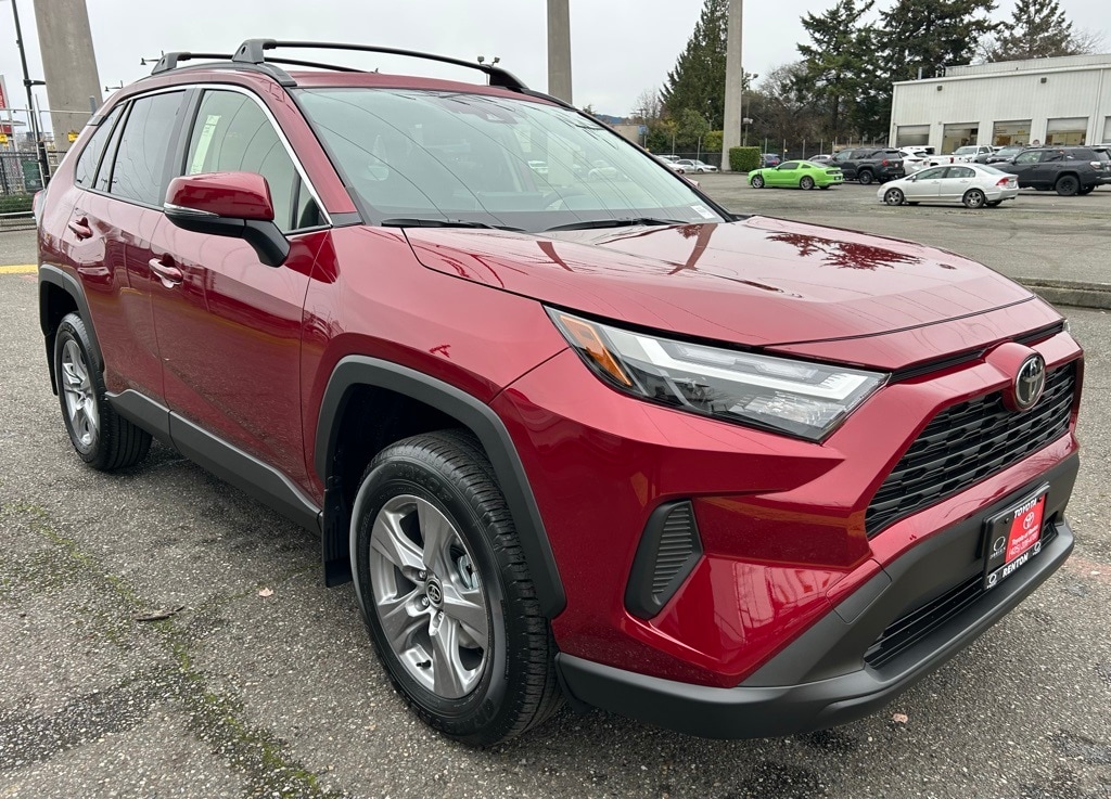 3 Spoke Leather Heated Steering Wheel, 4-Wheel Disc Brakes, 6 Speakers, ABS brakes, Air Conditioning, All Weather Floor Liners & Cargo Liner (TMS), Alloy wheels, AM/FM radio: SiriusXM, Auto High-beam Headlights, Automatic temperature control, Brake assist, Bumpers: body-color, Convenience Package, Delay-off headlights, Driver door bin, Driver vanity mirror, Dual front impact airbags, Dual front side impact airbags, Electronic Stability Control, Emergency communication system: Safety Connect (10-year trial), Exterior Parking Camera Rear, Fabric Seat Trim, Four wheel independent suspension, Front anti-roll bar, Front Bucket Seats, Front Center Armrest, Front Door Smart Key System w/Push Button Start, Front dual zone A/C, Front reading lights, Front Seat Heating, Fully automatic headlights, Heated door mirrors, Illuminated entry, Knee airbag, Low tire pressure warning, Mudguards (TMS), Multimedia Screen Protector - Glass (TMS), Occupant sensing airbag, Outside temperature display, Overhead airbag, Overhead console, Panic alarm, Passenger door bin, Passenger vanity mirror, Power door mirrors, Power driver seat, Power steering, Power windows, Radio data system, Radio: AM/FM/XM Audio System, Rear anti-roll bar, Rear seat center armrest, Rear window defroster, Rear window wiper, Remote keyless entry, Roof Rack Cross Bars (TMS), Speed control, Speed-sensing steering, Split folding rear seat, Spoiler, Steering wheel mounted audio controls, Tachometer, Telescoping steering wheel, Tilt & Slide Moon Roof, Tilt steering wheel, Traction control, Trip computer, Turn signal indicator mirrors, Variably intermittent wipers, Weather Package, Wheel Locks (TMS), Wheels: 17" 5-Spoke Silver Alloy.2025 Toyota RAV4 XLE Ruby AWD 8-Speed Automatic 2.5L 4-Cylinder DOHC Dual VVT-iRecent Arrival! 27/33 City/Highway MPG