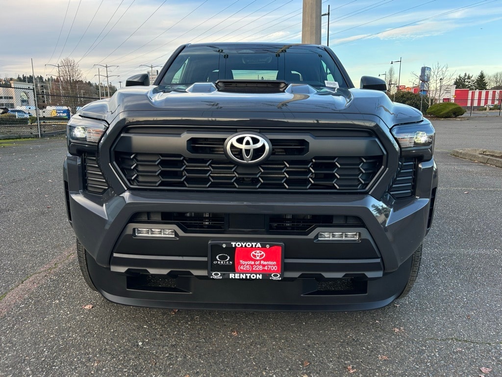 3.583 Axle Ratio, 4-Wheel Disc Brakes, 6 Speakers, ABS brakes, Air Conditioning, All Weather Floor Liners (TMS), Alloy wheels, AM/FM radio: SiriusXM, Anti-whiplash front head restraints, Apple CarPlay/Android Auto, Auto High-beam Headlights, Auto-dimming Rear-View mirror, Automatic temperature control, Black Tailgate Insert (TMS), Brake assist, Bumpers: body-color, Driver door bin, Driver vanity mirror, Dual front impact airbags, Dual front side impact airbags, Electronic Stability Control, Emergency communication system: Safety Connect (1-year trial), Exterior Parking Camera Rear, Fabric Seat Trim, Four wheel independent suspension, Front anti-roll bar, Front Bucket Seats, Front Center Armrest, Front fog lights, Front reading lights, Fully automatic headlights, Hard Tri-Fold Tonneau Cover (TMS), Heated door mirrors, Heated Seats, Illuminated entry, JBL Premium Audio, Knee airbag, Leather Shift Knob, Leather steering wheel, Low tire pressure warning, Multimedia Screen Protector - Glass (TMS), Occupant sensing airbag, Outside temperature display, Overhead airbag, Overhead console, Panic alarm, Passenger door bin, Passenger vanity mirror, Phone Cables - Smart USB (TMS), Power door mirrors, Power steering, Power windows, Radio: 8" Toyota Audio Multimedia, Rear step bumper, Rear window defroster, Remote keyless entry, Security system, SofTex Seat Trim, Speed control, Speed-sensing steering, Split folding rear seat, Steering wheel mounted audio controls, Tachometer, Telescoping steering wheel, Tilt steering wheel, Traction control, TRD Sport Package, Trip computer, Turn signal indicator mirrors, Variably intermittent wipers, Wheel Locks (TMS), Wheels: 18" TRD Sport Alloy.2025 Toyota Tacoma TRD Sport Underground 4WD 8-Speed Automatic 2.4L 4-Cylinder