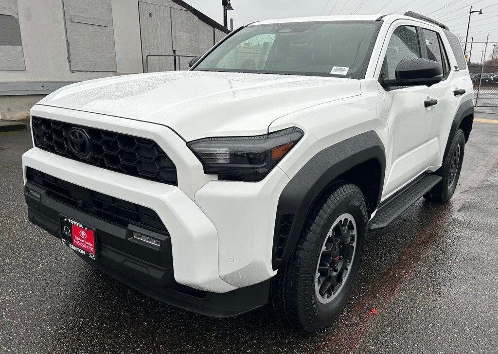 15 Speakers, 4-Wheel Disc Brakes, 4runner All Weather Cargo Tray, 4runner All Weather Floor Mats, ABS brakes, Air Conditioning, Alloy wheels, AM/FM radio: SiriusXM, Anti-whiplash front head restraints, Apple CarPlay/Android Auto, Auto High-beam Headlights, Auto-dimming Rear-View mirror, Automatic temperature control, Black Front Emblem Badge Overlay, Brake assist, Bumpers: body-color, Compass, Driver door bin, Driver vanity mirror, Dual front impact airbags, Dual front side impact airbags, Electronic Stability Control, Emergency communication system: Safety Connect (1-year trial), Exterior Parking Camera Rear, Front and Rear Molded Black 4Runner Mudguards, Front anti-roll bar, Front Bucket Seats, Front Center Armrest, Front dual zone A/C, Front fog lights, Front reading lights, Front wheel independent suspension, Heated and Ventilated Front Bucket Seats, Heated door mirrors, Heated front seats, Heated steering wheel, Illuminated entry, Intelligent Inside Rear View Mirror, Interior D-Pillar Cargo Lights, Knee airbag, Leather Shift Knob, Leather steering wheel, Low tire pressure warning, Memory seat, Moonroof, Navigation System, Occupant sensing airbag, Outside temperature display, Overhead airbag, Overhead console, Panic alarm, Passenger door bin, Passenger vanity mirror, Power door mirrors, Power driver seat, Power passenger seat, Power steering, Power windows, Radio: 14" Audio, Rear anti-roll bar, Rear seat center armrest, Rear side impact airbag, Rear window defroster, Rear window wiper, Remote keyless entry, Retractable Black Cargo Cover, Security system, SofTex Seat Trim, Speed control, Speed-sensing steering, Split folding rear seat, Spoiler, Steering wheel mounted audio controls, Tachometer, Telescoping steering wheel, Tilt steering wheel, Traction control, TRD Offroad Premium, Trip computer, Turn signal indicator mirrors, Variably intermittent wipers, Ventilated front seats, Wheels: 18" Matte-Black Painted.2026 Toyota 4Runner TRD Off-Road Premium Ice 4WD 8-Speed Automatic 2.4L 4-CylinderRecent Arrival!