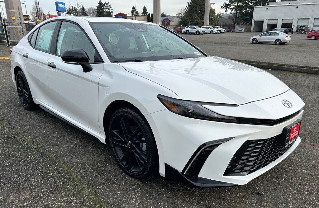 4-Wheel Disc Brakes, 6 Speakers, ABS brakes, Air Conditioning, All Weather Floor Protection, Alloy wheels, AM/FM radio: SiriusXM, Apple CarPlay/Android Auto, Auto High-beam Headlights, Auto-Dimming Rearview Mirror with HomeLink, Automatic temperature control, Brake assist, Bumpers: body-color, Cold Weather Package, Convenience Package, Delay-off headlights, Driver door bin, Driver vanity mirror, Dual front impact airbags, Dual front side impact airbags, Electronic Stability Control, Emergency communication system: Safety Connect (5-year trial), Exterior Parking Camera Rear, Four wheel independent suspension, Front Accent Lights, Front anti-roll bar, Front Bucket Seats, Front Center Armrest, Front dual zone A/C, Front reading lights, Front Seats, Fully automatic headlights, Heated door mirrors, Heated Front Seats, Heated Leather Steering Wheel with Paddle Shifters, Illuminated entry, Knee airbag, Leather Shift Knob, Leather steering wheel, Low tire pressure warning, Multimedia Upgrade Package, Nightshade Edition, Occupant sensing airbag, Outside temperature display, Overhead airbag, Overhead console, Panic alarm, Passenger door bin, Passenger vanity mirror, Power door mirrors, Power driver seat, Power steering, Power Tilt/Slide Moonroof, Power windows, Radio data system, Radio: 12.3" Toyota Multimedia Audio, Radio: 8" Toyota Audio Multimedia, Rear anti-roll bar, Rear Bumper Applique, Rear reading lights, Rear seat center armrest, Rear window defroster, Remote keyless entry, Security system, Smart Key System on Front Doors, SofTex and Fabric Seat Trim, Speed control, Speed-sensing steering, Split folding rear seat, Spoiler, Steering wheel mounted audio controls, Telescoping steering wheel, Tilt steering wheel, Traction control, Trip computer, Turn signal indicator mirrors, Variably intermittent wipers, Wheel Locks, Wheels: 19" Satin Black-Finished Alloy.2026 Toyota Camry SE Nightshade Ice AWD eCVT 2.5L 4-Cylinder 16V DOHCRecent Arrival! 46/46 City/Highway MPG