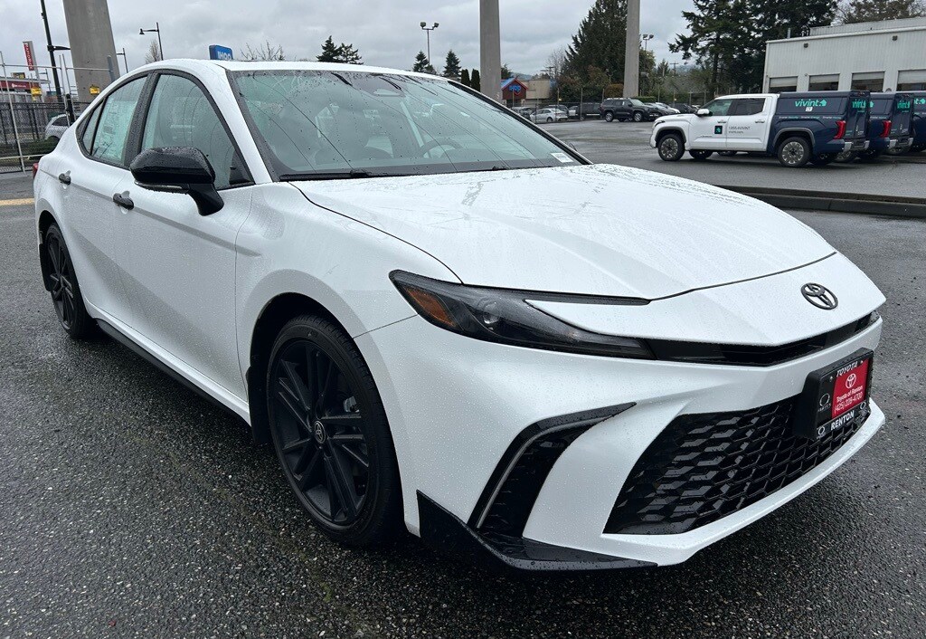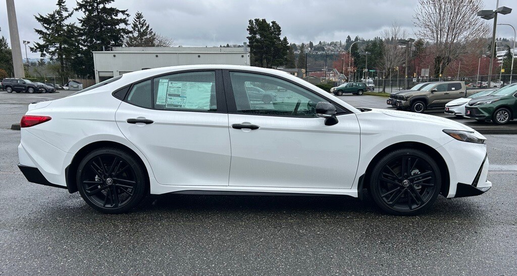 4-Wheel Disc Brakes, 6 Speakers, ABS brakes, Air Conditioning, All Weather Floor Protection, Alloy wheels, AM/FM radio: SiriusXM, Apple CarPlay/Android Auto, Auto High-beam Headlights, Auto-Dimming Rearview Mirror with HomeLink, Automatic temperature control, Brake assist, Bumpers: body-color, Cold Weather Package, Convenience Package, Delay-off headlights, Driver door bin, Driver vanity mirror, Dual front impact airbags, Dual front side impact airbags, Electronic Stability Control, Emergency communication system: Safety Connect (5-year trial), Exterior Parking Camera Rear, Four wheel independent suspension, Front Accent Lights, Front anti-roll bar, Front Bucket Seats, Front Center Armrest, Front dual zone A/C, Front reading lights, Front Seats, Fully automatic headlights, Heated door mirrors, Heated Front Seats, Heated Leather Steering Wheel with Paddle Shifters, Illuminated entry, Knee airbag, Leather Shift Knob, Leather steering wheel, Low tire pressure warning, Mudguards, Multimedia Upgrade Package, Nightshade Edition, Occupant sensing airbag, Outside temperature display, Overhead airbag, Overhead console, Panic alarm, Passenger door bin, Passenger vanity mirror, Power door mirrors, Power driver seat, Power steering, Power Tilt/Slide Moonroof, Power windows, Radio data system, Radio: 12.3" Toyota Multimedia Audio, Radio: 8" Toyota Audio Multimedia, Rear anti-roll bar, Rear reading lights, Rear seat center armrest, Rear window defroster, Remote keyless entry, Security system, Smart Key System on Front Doors, SofTex and Fabric Seat Trim, Speed control, Speed-sensing steering, Split folding rear seat, Spoiler, Steering wheel mounted audio controls, Telescoping steering wheel, Tilt steering wheel, Traction control, Trip computer, Turn signal indicator mirrors, Variably intermittent wipers, Wheel Locks, Wheels: 19" Satin Black-Finished Alloy.2026 Toyota Camry SE Nightshade Ice AWD eCVT 2.5L 4-Cylinder 16V DOHCRecent Arrival! 46/46 City/Highway MPG