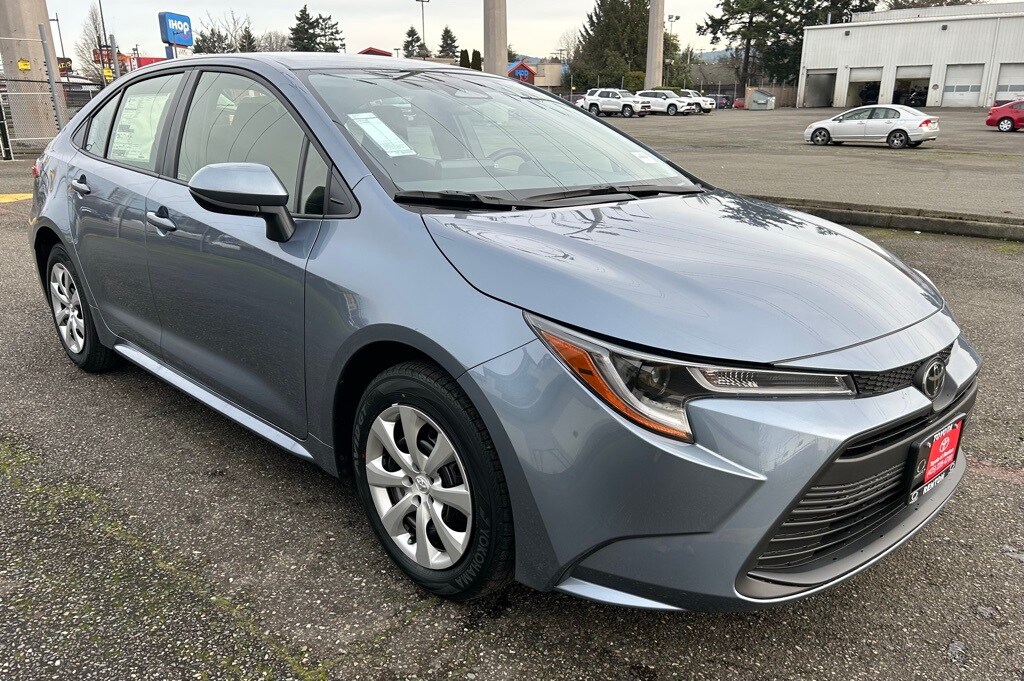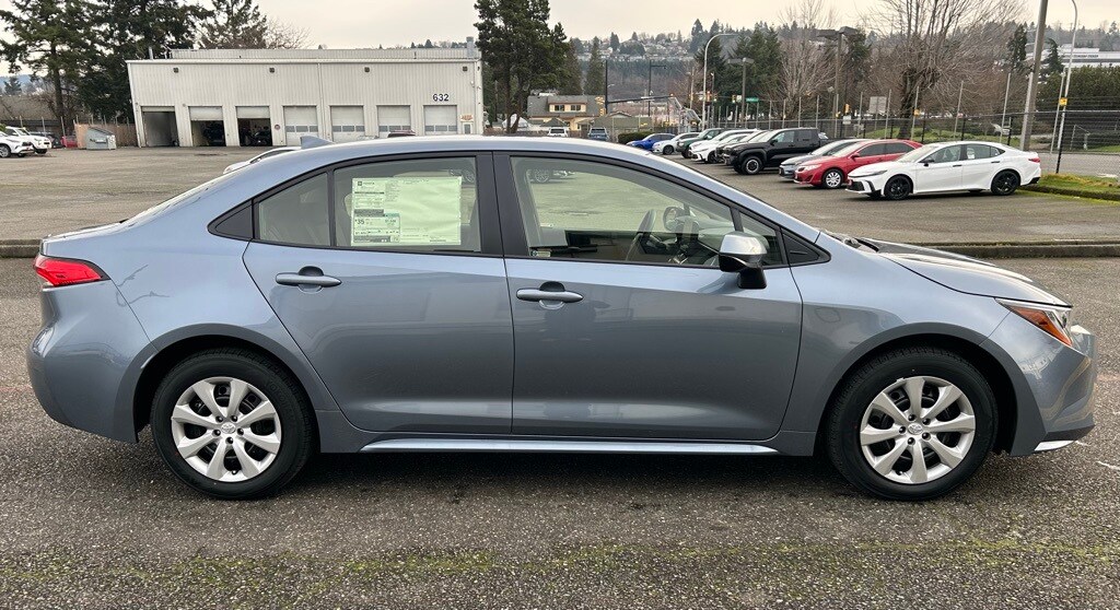 4-Wheel Disc Brakes, 6 Speakers, ABS brakes, Air Conditioning, All Weather Floor Liner Package, AM/FM radio: SiriusXM, Apple CarPlay/Android Auto, Auto High-beam Headlights, Automatic temperature control, Brake assist, Bumpers: body-color, Delay-off headlights, Driver door bin, Driver vanity mirror, Dual front impact airbags, Dual front side impact airbags, Electronic Stability Control, Emergency communication system: Safety Connect (up to 10-year trial subscription), Exterior Parking Camera Rear, Fabric Seat Trim, Front anti-roll bar, Front Bucket Seats, Front Center Armrest, Front reading lights, Front wheel independent suspension, Fully automatic headlights, Heated door mirrors, Illuminated entry, Knee airbag, Low tire pressure warning, Occupant sensing airbag, Outside temperature display, Overhead airbag, Panic alarm, Passenger door bin, Passenger vanity mirror, Power door mirrors, Power steering, Power windows, Radio data system, Radio: 8" Toyota Audio Multimedia, Rear anti-roll bar, Rear seat center armrest, Rear side impact airbag, Rear window defroster, Remote keyless entry, Speed control, Split folding rear seat, Steering wheel mounted audio controls, Tachometer, Telescoping steering wheel, Tilt steering wheel, Traction control, Trip computer, Wheels: 16" Steel with Covers.2026 Toyota Corolla LE Celestite FWD CVT 2.0L I4 PDI DOHC 16V LEV3-SULEV30 169hpRecent Arrival! 32/41 City/Highway MPG