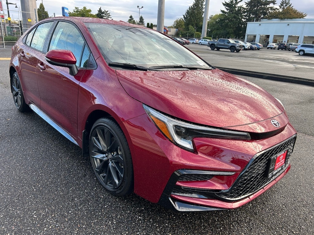 12.3" Digital Gauge Cluster, 4-Wheel Disc Brakes, 6 Speakers, ABS brakes, Air Conditioning, All Weather Floor Liner Package (TMS), Alloy Wheel Locks (TMS), Alloy wheels, AM/FM radio: SiriusXM, Apple CarPlay/Android Auto, Auto High-beam Headlights, Automatic temperature control, Brake assist, Bumpers: body-color, Delay-off headlights, Driver door bin, Driver vanity mirror, Dual front impact airbags, Dual front side impact airbags, Electronic Stability Control, Emergency communication system: Safety Connect (up to 10-year trial subscription), Exterior Parking Camera Rear, Fabric Seat Trim, Four wheel independent suspension, Frameless HomeLink Mirror (TMS), Front anti-roll bar, Front Bucket Seats, Front Center Armrest, Front reading lights, Front Sport Seats, Fully automatic headlights, Heated door mirrors, Illuminated entry, Knee airbag, Leather steering wheel, Low tire pressure warning, Mudguards (TMS), Occupant sensing airbag, Outside temperature display, Overhead airbag, Panic alarm, Passenger door bin, Passenger vanity mirror, Power door mirrors, Power steering, Power windows, Qi-Compatible Wireless Smartphone Charger, Radio data system, Radio: 10.5" Toyota Audio Multimedia, Radio: 8" Toyota Audio Multimedia, Rear anti-roll bar, Rear Bumper Protector (TMS), Rear seat center armrest, Rear side impact airbag, Rear window defroster, Remote keyless entry, SE Package, Speed control, Split folding rear seat, Spoiler, Steering wheel mounted audio controls, Tachometer, Telescoping steering wheel, Tilt steering wheel, Traction control, Trip computer, Trunk LED Light (TMS), Turn signal indicator mirrors, Variably intermittent wipers, Wheels: 18" Alloy w/Graphite-Colored Finish.2026 Toyota Corolla SE Ruby FWD CVT 2.0L I4 PDI DOHC 16V LEV3-SULEV30 169hp31/40 City/Highway MPG