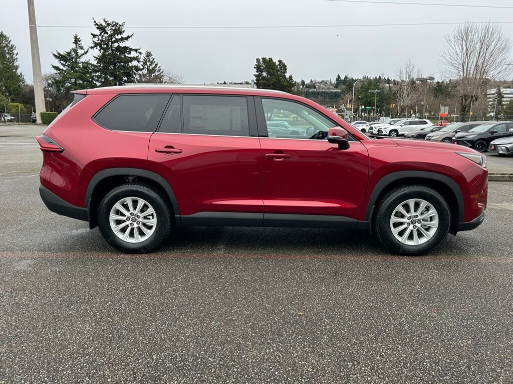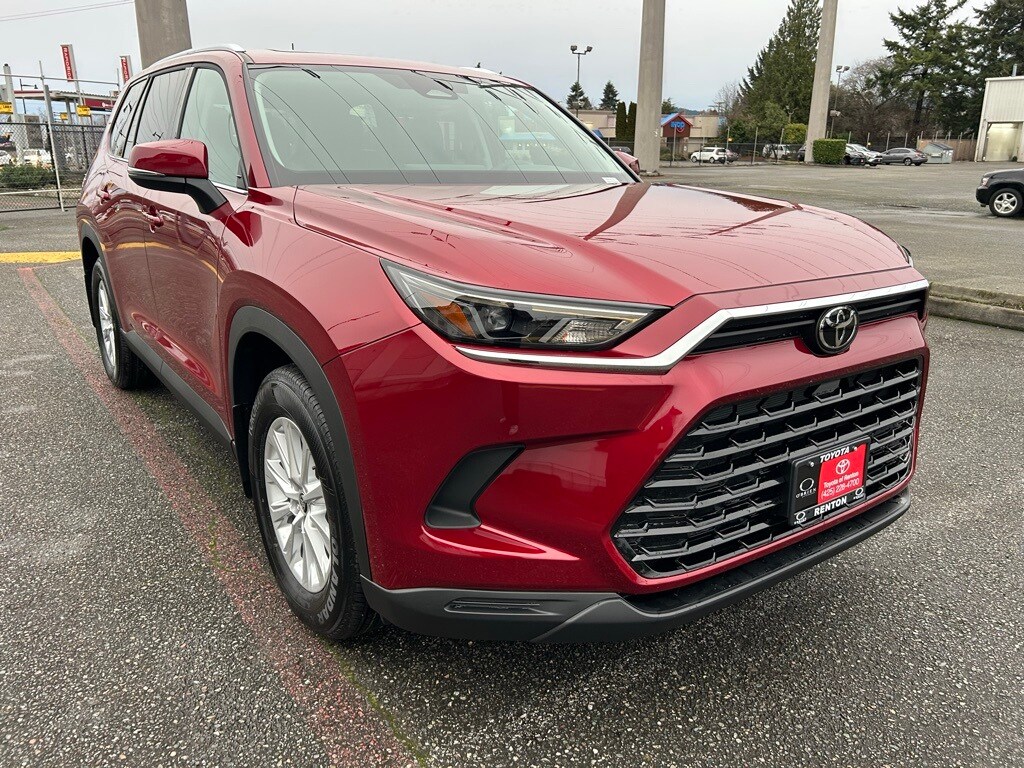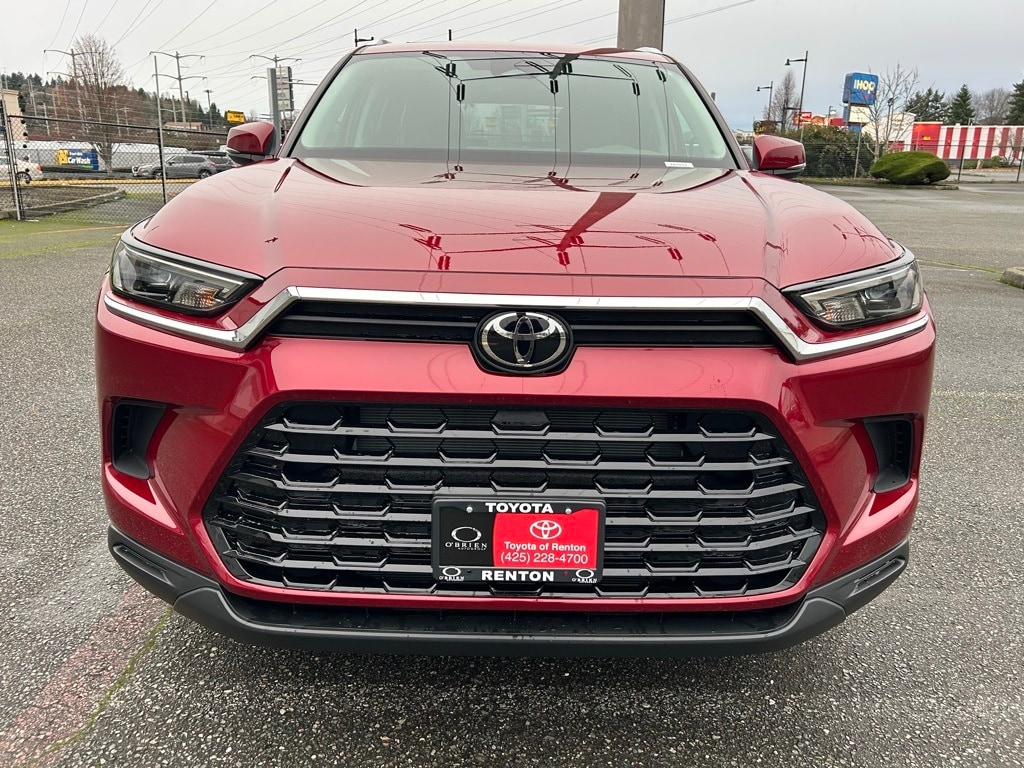 3rd row seats: split-bench, 4-Wheel Disc Brakes, 6 Speakers, ABS brakes, Air Conditioning, All Weather Floor Liners/Cargo Tray, Alloy wheels, AM/FM radio: SiriusXM, Apple CarPlay/Android Auto, Auto High-beam Headlights, Auto-dimming Rear-View mirror, Automatic temperature control, Brake assist, Bumpers: body-color, Delay-off headlights, Driver door bin, Driver vanity mirror, Dual front impact airbags, Dual front side impact airbags, Electronic Stability Control, Emergency communication system: Safety Connect (up to 10-year trial subscription), Exterior Parking Camera Rear, Four wheel independent suspension, Front anti-roll bar, Front Bucket Seats, Front Center Armrest, Front dual zone A/C, Front reading lights, Fully automatic headlights, Garage door transmitter: HomeLink, Heated door mirrors, Heated Front Seats, Heated front seats, Illuminated entry, Knee airbag, Leather Shift Knob, Leather steering wheel, Low tire pressure warning, Mudguards, Navigation system: Drive Connect Cloud Navigation (1-year trial subscription), Occupant sensing airbag, Outside temperature display, Overhead airbag, Overhead console, Panic alarm, Passenger door bin, Passenger vanity mirror, Power door mirrors, Power driver seat, Power Liftgate, Power passenger seat, Power steering, Power Tilt/Slide Panoramic Rood with Power Sunshade, Power windows, Premium Paint, Radio: 12.3" Toyota Multimedia Audio, Rear air conditioning, Rear anti-roll bar, Rear reading lights, Rear window defroster, Rear window wiper, Reclining 3rd row seat, Remote keyless entry, Security system, SofTex Seat Trim, Speed control, Speed-sensing steering, Split folding rear seat, Spoiler, Steering wheel mounted audio controls, Tachometer, Telescoping steering wheel, Tilt steering wheel, Tow Hitch, Traction control, Trip computer, Turn signal indicator mirrors, Variably intermittent wipers, Wheel Locks, Wheels: 18" Multi-Spoke Aluminum Silver.2026 Toyota Grand Highlander XLE Ruby AWD 8-Speed Automatic 2.4L 4-CylinderRecent Arrival! 21/27 City/Highway MPG