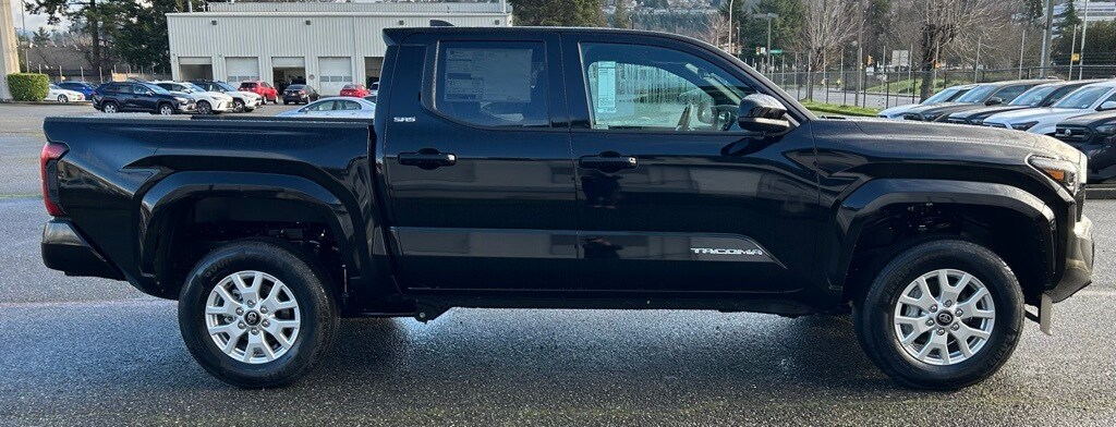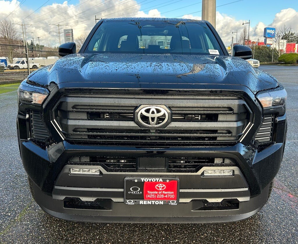 3.583 Axle Ratio, 4-Wheel Disc Brakes, 6 Speakers, ABS brakes, Air Conditioning, All Weather Floor Liners, Alloy wheels, AM/FM radio: SiriusXM, Anti-whiplash front head restraints, Apple CarPlay/Android Auto, Auto High-beam Headlights, Auto-dimming Rear-View mirror, Black Tailgate Insert, Brake assist, Bumpers: body-color, Driver door bin, Dual front impact airbags, Dual front side impact airbags, Electronic Stability Control, Emergency communication system: Safety Connect (up to 10-year trial subscription), Exterior Parking Camera Rear, Fabric Seat Trim, Four wheel independent suspension, Front anti-roll bar, Front Bucket Seats, Front Center Armrest, Front fog lights, Front reading lights, Fully automatic headlights, Heated door mirrors, Heated Seats, Illuminated entry, JBL Premium Audio, Knee airbag, Low tire pressure warning, Occupant sensing airbag, Outside temperature display, Overhead airbag, Overhead console, Panic alarm, Passenger door bin, Power door mirrors, Power steering, Power windows, Radio: 8" Toyota Audio Multimedia, Rear step bumper, Rear window defroster, Remote keyless entry, Speed control, Speed-sensing steering, Split folding rear seat, Steering wheel mounted audio controls, Tachometer, Telescoping steering wheel, Tilt steering wheel, Traction control, Trip computer, Variably intermittent wipers, Wheel Locks, Wheels: 17" Styled Alloy.2026 Toyota Tacoma SR5 Black 4WD 8-Speed Automatic 2.4L 4-Cylinder