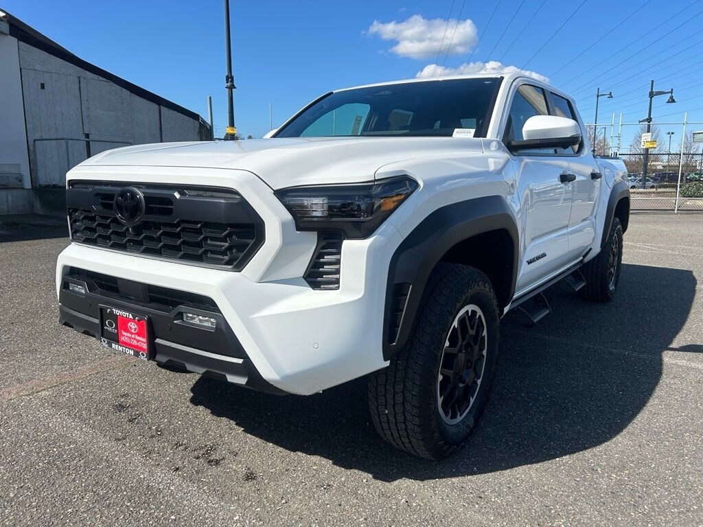 18" Wheels, 3.583 Axle Ratio, 3D Multi-Terrain Monitor, 4-Wheel Disc Brakes, 6 Speakers, ABS brakes, Air Conditioning, All Weather Floor Liners, Alloy wheels, AM/FM radio: SiriusXM, Anti-whiplash front head restraints, Apple CarPlay/Android Auto, Auto High-beam Headlights, Auto-dimming Rear-View mirror, Automatic temperature control, Bed Scene Lighting, Black Tailgate Insert, Brake assist, Bumpers: body-color, Deck Storage Box, Digital Rearview Mirror, Driver door bin, Driver vanity mirror, Dual front impact airbags, Dual front side impact airbags, Electronic Stability Control, Emergency communication system: Safety Connect (up to 10-year trial subscription), Exterior Parking Camera Rear, Fabric Seat Trim, Four wheel independent suspension, Front anti-roll bar, Front Bucket Seats, Front Center Armrest, Front fog lights, Front reading lights, Fully automatic headlights, Heated door mirrors, Heated Front Seats, Heated Leather-Trimmed Steering Wheel, Illuminated entry, JBL Premium Audio, Knee airbag, Leather Shift Knob, Leather steering wheel, Low Auxiliary (30A) Switches, Low tire pressure warning, Occupant sensing airbag, Outside temperature display, Overhead airbag, Overhead console, Panic alarm, Passenger door bin, Passenger vanity mirror, Power door mirrors, Power steering, Power windows, Radio: 8" Toyota Audio Multimedia, Rear step bumper, Rear window defroster, Remote keyless entry, Removable Predator Step, Security system, SofTex Seat Trim, Speed control, Speed-sensing steering, Split folding rear seat, Spray-on Bed Liner, Steering wheel mounted audio controls, Tachometer, Telescoping steering wheel, Tilt steering wheel, Tow Tech Package, Traction control, TRD Off Road Premium Package, Trip computer, Turn signal indicator mirrors, Variably intermittent wipers.2026 Toyota Tacoma TRD Off-Road Ice 4WD 8-Speed Automatic 2.4L 4-CylinderRecent Arrival!