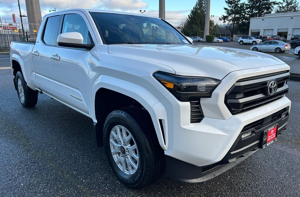 3.583 Axle Ratio, 4-Wheel Disc Brakes, 6 Speakers, ABS brakes, Air Conditioning, All Weather Floor Liners, Alloy wheels, AM/FM radio: SiriusXM, Anti-whiplash front head restraints, Apple CarPlay/Android Auto, Auto High-beam Headlights, Auto-dimming Rear-View mirror, Brake assist, Bumpers: body-color, Driver door bin, Dual front impact airbags, Dual front side impact airbags, Electronic Stability Control, Emergency communication system: Safety Connect (up to 10-year trial subscription), Exterior Parking Camera Rear, Fabric Seat Trim, Four wheel independent suspension, Front anti-roll bar, Front Bucket Seats, Front Center Armrest, Front fog lights, Front reading lights, Fully automatic headlights, Heated door mirrors, Heated Seats, Illuminated entry, Knee airbag, Low tire pressure warning, Mudguards, Multimedia Glass Screen Protector, Occupant sensing airbag, Outside temperature display, Overhead airbag, Overhead console, Panic alarm, Passenger door bin, Power door mirrors, Power steering, Power windows, Radio: 8" Toyota Audio Multimedia, Rear step bumper, Rear window defroster, Remote keyless entry, Speed control, Speed-sensing steering, Split folding rear seat, Steering wheel mounted audio controls, Tachometer, Telescoping steering wheel, Tilt steering wheel, Traction control, Trip computer, USB Rear Power Port, Variably intermittent wipers, Wheel Locks, Wheels: 17" Styled Alloy.2026 Toyota Tacoma SR5 Ice RWD 8-Speed Automatic 2.4L 4-CylinderRecent Arrival! 21/26 City/Highway MPG