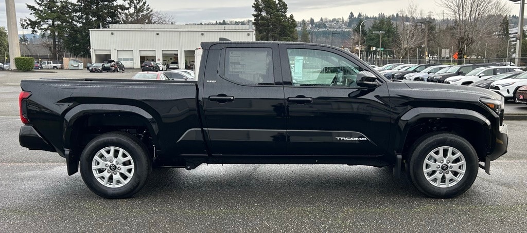 3.583 Axle Ratio, 4-Wheel Disc Brakes, 6 Speakers, ABS brakes, Air Conditioning, All Weather Floor Liners, Alloy wheels, AM/FM radio: SiriusXM, Anti-whiplash front head restraints, Apple CarPlay/Android Auto, Auto High-beam Headlights, Auto-dimming Rear-View mirror, Brake assist, Bumpers: body-color, Driver door bin, Dual front impact airbags, Dual front side impact airbags, Electronic Stability Control, Emergency communication system: Safety Connect (up to 10-year trial subscription), Exterior Parking Camera Rear, Fabric Seat Trim, Four wheel independent suspension, Front anti-roll bar, Front Bucket Seats, Front Center Armrest, Front fog lights, Front reading lights, Fully automatic headlights, Heated door mirrors, Heated Seats, Illuminated entry, JBL Premium Audio, Knee airbag, Low tire pressure warning, Mudguards, Occupant sensing airbag, Outside temperature display, Overhead airbag, Overhead console, Panic alarm, Passenger door bin, Power door mirrors, Power steering, Power windows, Radio: 8" Toyota Audio Multimedia, Rear step bumper, Rear window defroster, Remote keyless entry, Speed control, Speed-sensing steering, Split folding rear seat, Steering wheel mounted audio controls, Tachometer, Telescoping steering wheel, Tilt steering wheel, Traction control, Trip computer, Variably intermittent wipers, Wheel Locks, Wheels: 17" Styled Alloy.2026 Toyota Tacoma SR5 Black 4WD 8-Speed Automatic 2.4L 4-Cylinder