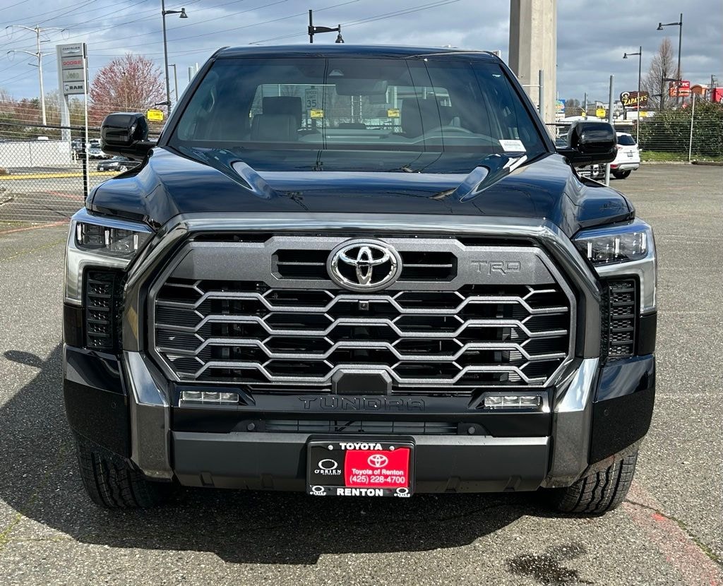 10-Way Power Adjustable Heated and Ventilated Front Seats, 12 Speakers, 3.31 Axle Ratio, 4-Wheel Disc Brakes, ABS brakes, Air Conditioning, All Weather Floor Liners, Alloy wheels, AM/FM radio: SiriusXM, Apple CarPlay/Android Auto, Auto High-beam Headlights, Auto-dimming door mirrors, Auto-dimming Rear-View mirror, Automatic temperature control, Brake assist, Bumpers: body-color, Compass, Delay-off headlights, Driver door bin, Driver vanity mirror, Dual front impact airbags, Dual front side impact airbags, Electronic Stability Control, Emergency communication system: Safety Connect (up to 10-year trial subscription), Exterior Parking Camera Rear, Front anti-roll bar, Front Bucket Seats, Front Center Armrest, Front dual zone A/C, Front fog lights, Front reading lights, Front wheel independent suspension, Fully automatic headlights, Garage door transmitter: HomeLink, Head Up Display (HUD), Heated door mirrors, Heated front seats, Heated rear seats, Heated steering wheel, Illuminated entry, Knee airbag, Leather Shift Knob, Leather steering wheel, Low tire pressure warning, Memory seat, Multimedia Glass Screen Protector, Navigation system: Drive Connect Cloud Navigation (1-year trial subscription), Occupant sensing airbag, Outside temperature display, Overhead airbag, Overhead console, Panic alarm, Passenger door bin, Passenger vanity mirror, Power door mirrors, Power driver seat, Power moonroof, Power passenger seat, Power steering, Power windows, Premium Leather Seat Trim, Radio data system, Radio: Premium Audio, Rain sensing wipers, Rear reading lights, Rear seat center armrest, Rear step bumper, Rear window defroster, Remote keyless entry, Safety Connect, Security system, Speed control, Speed-sensing steering, Speed-Sensitive Wipers, Split folding rear seat, Steering wheel memory, Steering wheel mounted audio controls, Tachometer, Telescoping steering wheel, Tilt steering wheel, Traction control, TRD Cast Aluminum Running Board, TRD Off-Road Package, Trip computer, Turn signal indicator mirrors, Variably intermittent wipers, Ventilated front seats, Ventilated rear seats, Voltmeter, Wheel Locks, Wheels: 20" Dark Painted Alloy.2026 Toyota Tundra Platinum Black 4WD 10-Speed Automatic 3.4L V6