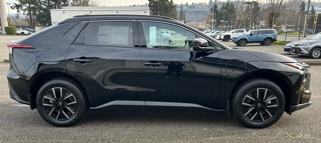 4-Wheel Disc Brakes, 6 Speakers, ABS brakes, Air Conditioning, All Weather Floor Liners/All Weather Cargo, Alloy wheels, AM/FM radio: SiriusXM, Apple CarPlay/Android Auto, Auto High-beam Headlights, Auto-dimming Rear-View mirror, Automatic temperature control, Brake assist, Bumpers: body-color, Delay-off headlights, Driver door bin, Driver vanity mirror, Dual front impact airbags, Dual front side impact airbags, Electronic Stability Control, Emergency communication system: Safety Connect (10-year trial), Exterior Parking Camera Rear, Fabric/SofTex Seat Trim, Four wheel independent suspension, Front anti-roll bar, Front Bucket Seats, Front Center Armrest, Front dual zone A/C, Front reading lights, Fully automatic headlights, Garage door transmitter: HomeLink, Heated door mirrors, Heated Front Seats, Heated front seats, Heated steering wheel, Illuminated entry, Knee airbag, Leather steering wheel, Low tire pressure warning, Mudguard, Navigation system: Drive Connect (3 year trial) includes Cloud Navigation with real time traffic and Google POI, Occupant sensing airbag, Outside temperature display, Overhead airbag, Overhead console, Panic alarm, Passenger door bin, Passenger vanity mirror, Power door mirrors, Power driver seat, Power Liftgate, Power steering, Power windows, Radio data system, Radio: 14" Toyota Audio Multimedia, Rain sensing wipers, Rear anti-roll bar, Rear seat center armrest, Rear window defroster, Remote keyless entry, Security system, Speed control, Speed-sensing steering, Split folding rear seat, Spoiler, Steering wheel mounted audio controls, Telescoping steering wheel, Tilt steering wheel, Traction control, Trip computer, Turn signal indicator mirrors, Variably intermittent wipers, Wheel Locks, Wheels: 18" Alloy with Covers.2026 Toyota bZ XLE Plus Black FWD Single-Speed Automatic Electric Motor143/119 City/Highway MPG